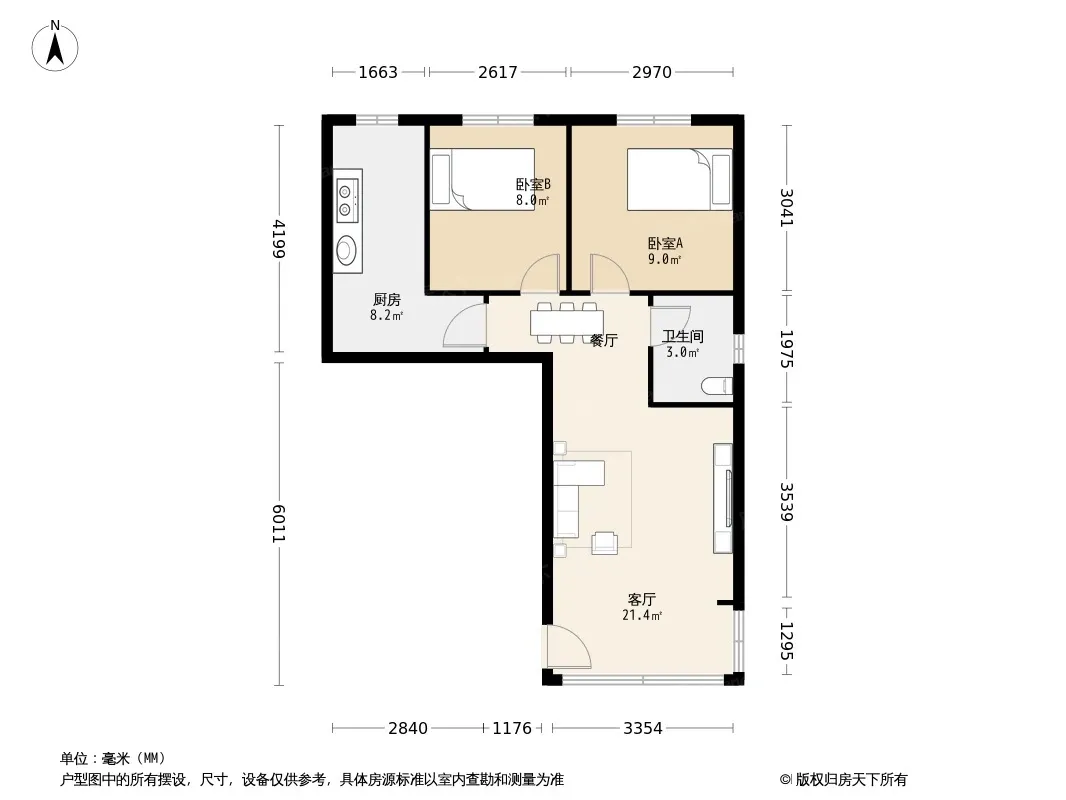 户型齐全,主打户型方正,明厨,明卫,客厅朝南,全明格局二居