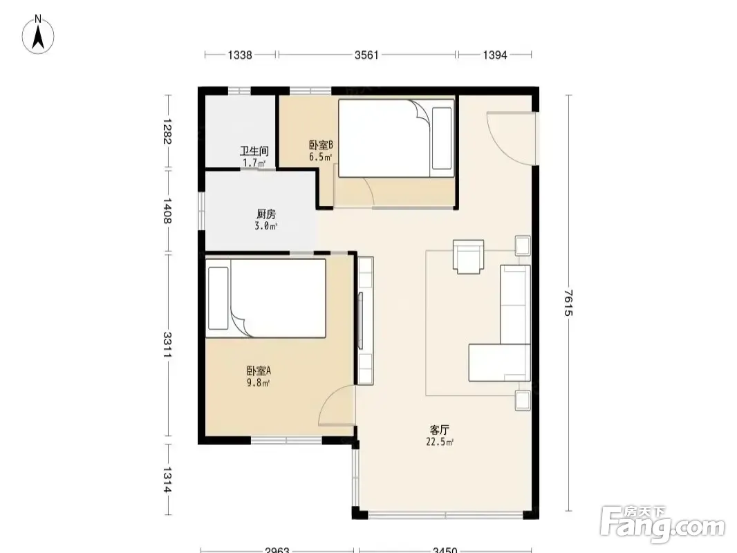 户型齐全,主打明卫,明厨,客厅朝南,全明格局二居