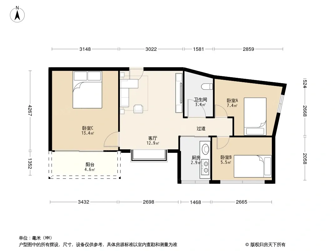 *获取完整户型报告,同时会有免费语音讲解服务