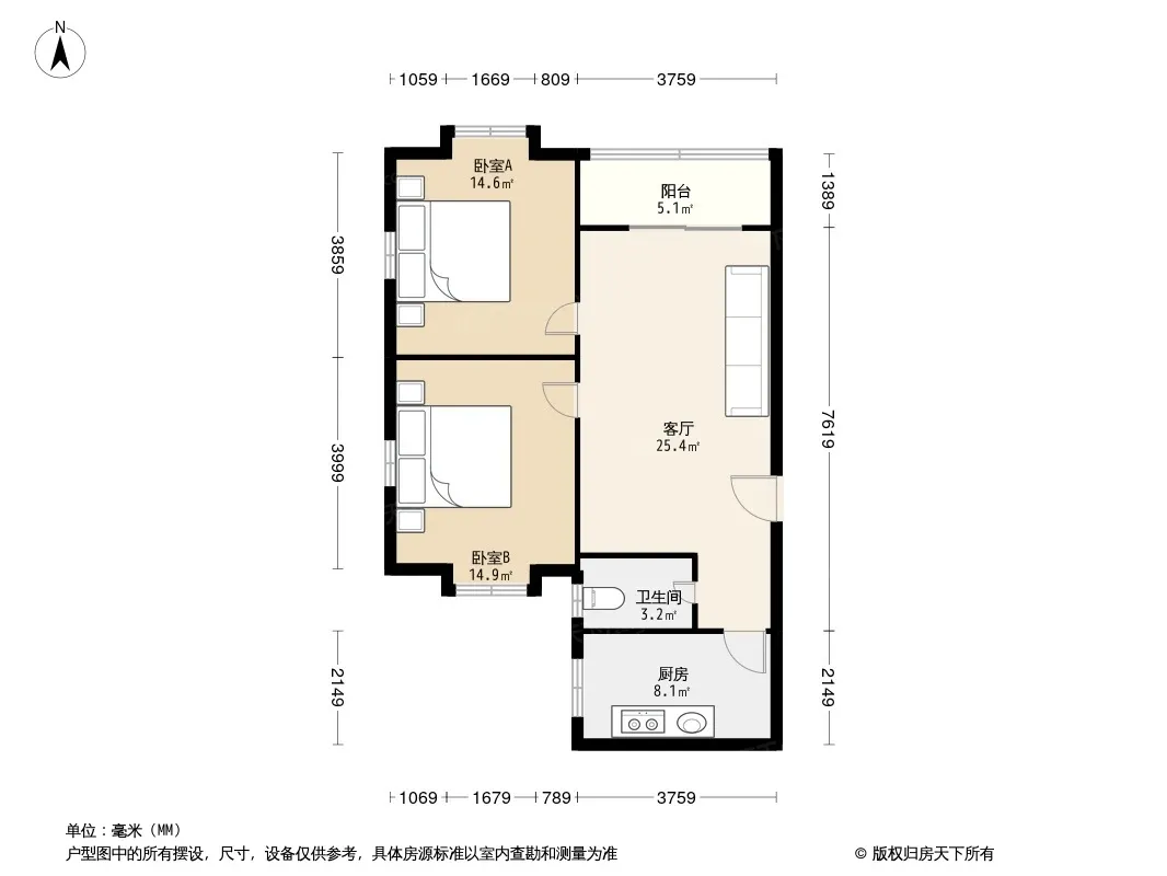 户型齐全,主打户型方正二居