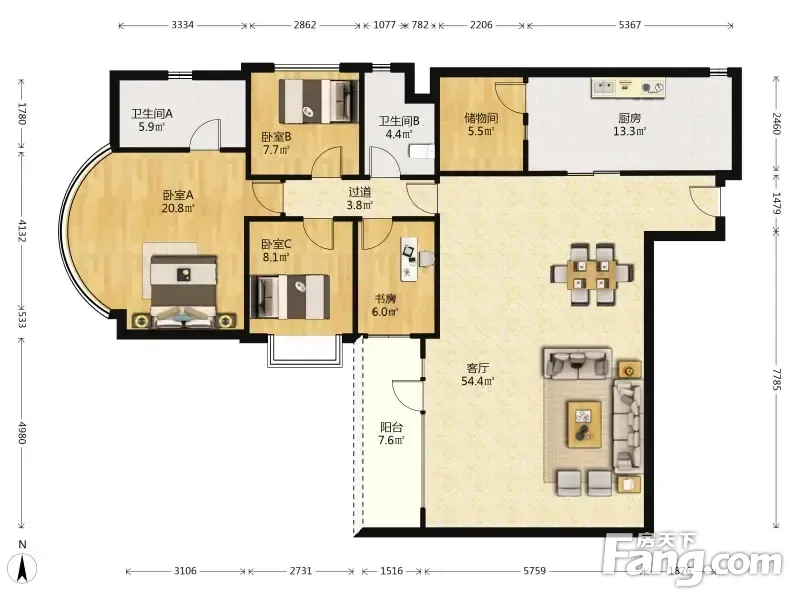 房屋拥有相对宽松的尺寸,布局通透,动静分离,设计豪华