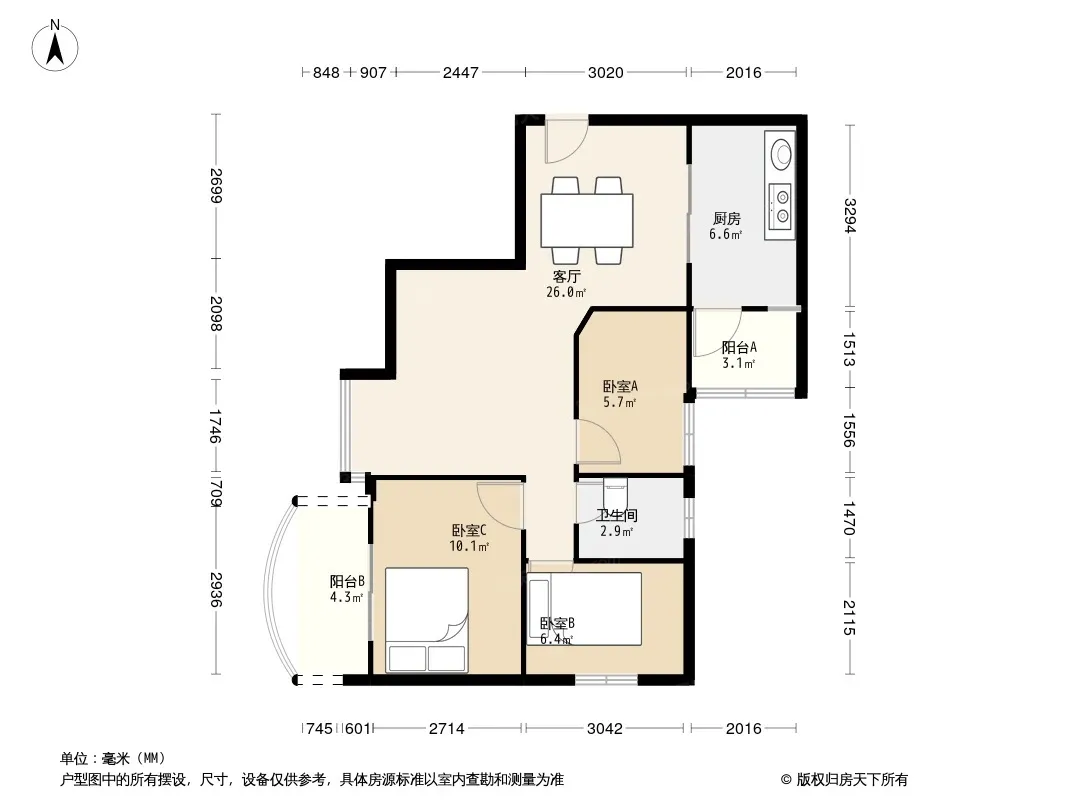 户型齐全,主打明厨,明卫三居