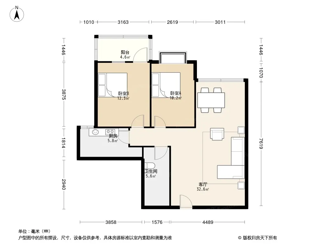 户型齐全,主打户型方正,明厨,客厅朝南二居