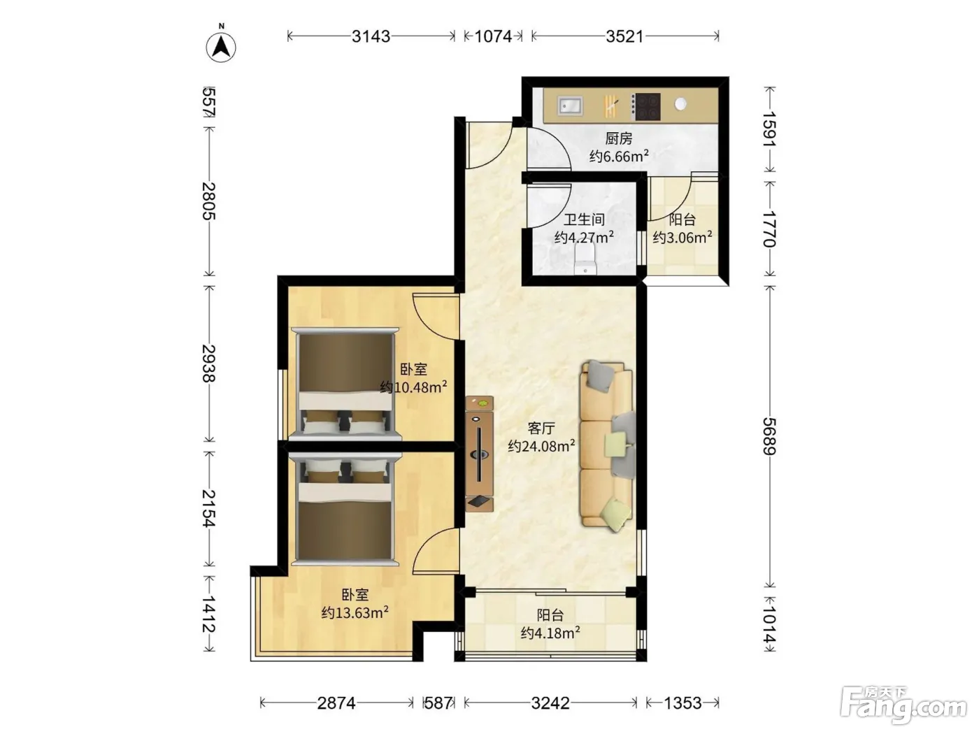 户型齐全,主打户型方正,客厅朝南,双卧朝南二居
