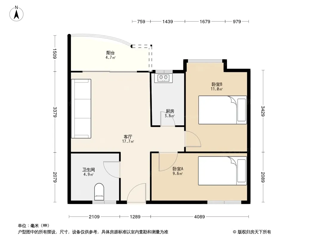户型齐全,主打户型方正,双阳台,主卧朝南二居