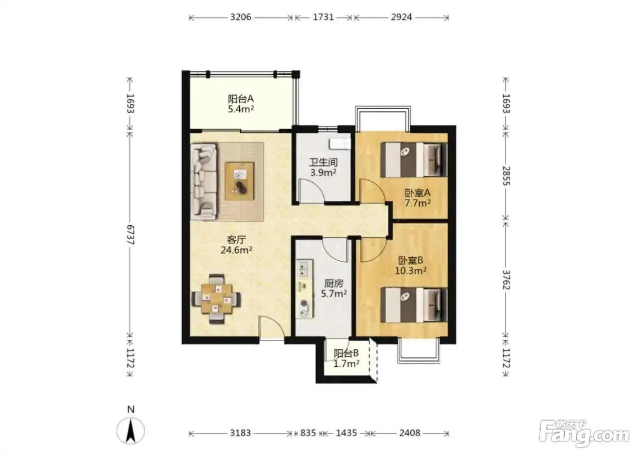 户型齐全,主打明卫,客厅朝南二居