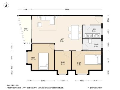 户型齐全,主打户型方正,明卫三居