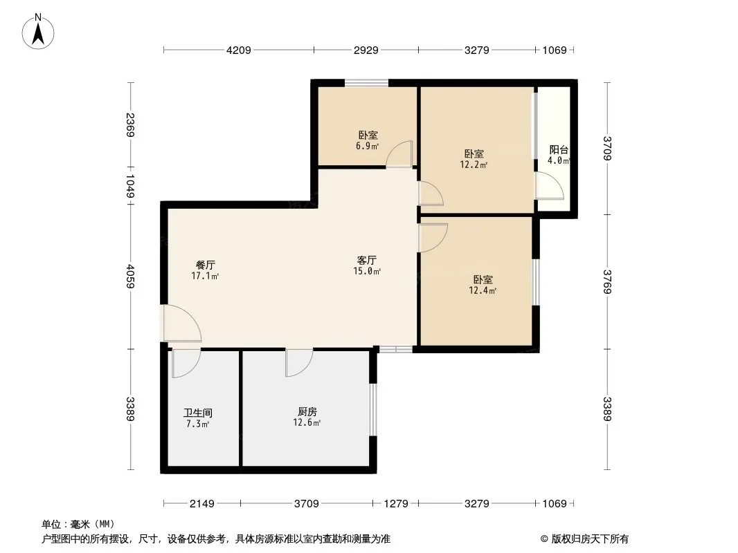 户型齐全,主打明厨,明卫三居