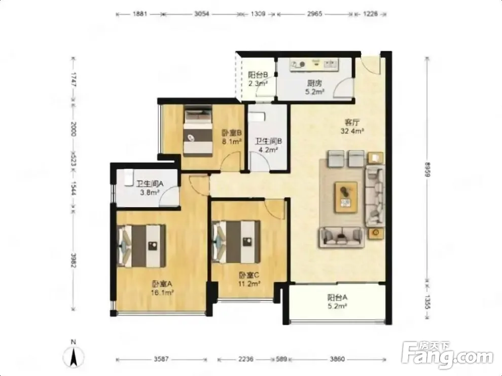 盈彩美居 3室2厅 东北