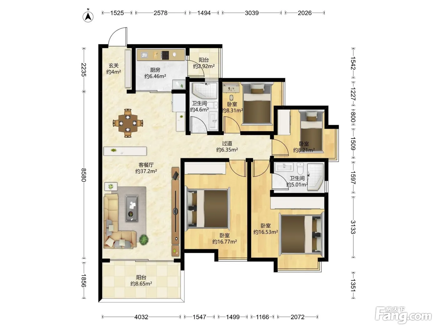 户型齐全,主打明卫,双阳台三居