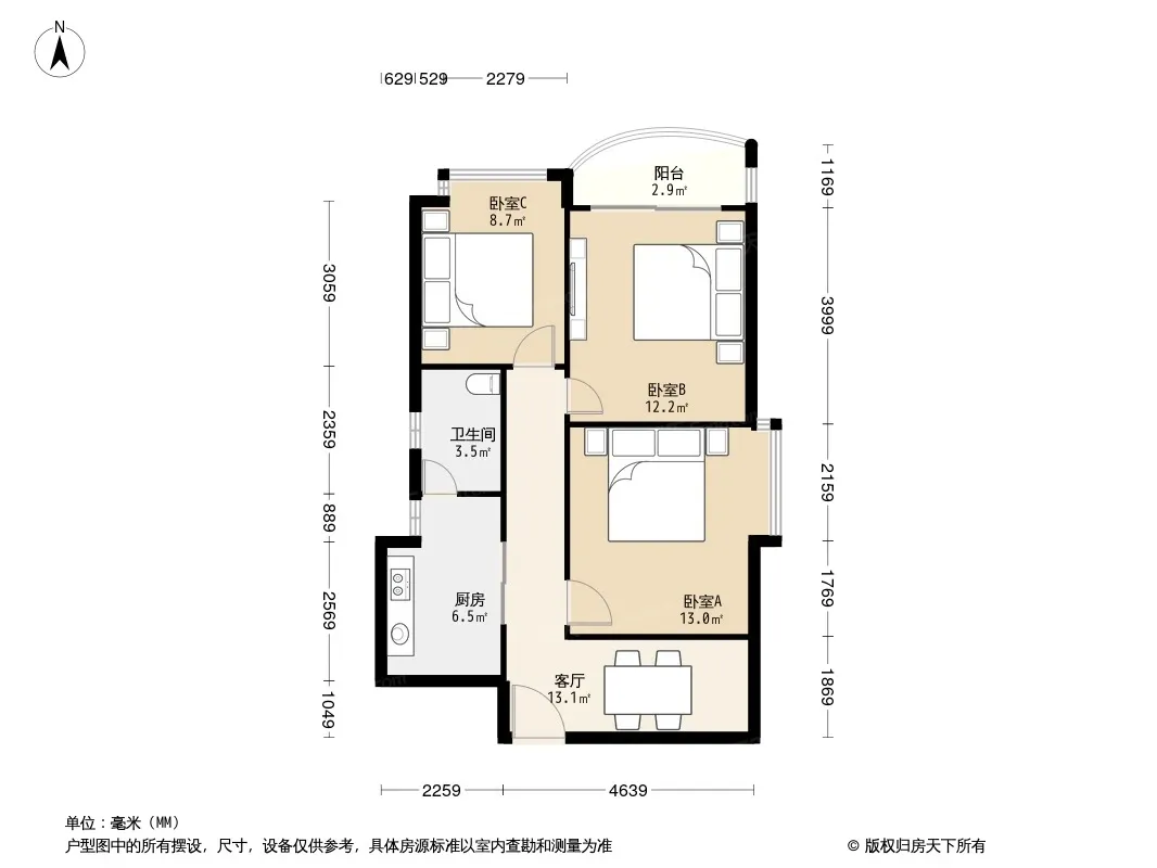 户型齐全,主打户型方正,明卫,客厅朝南三居