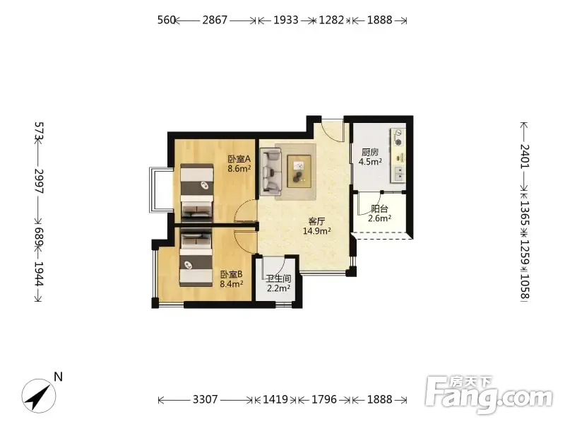 2室1厅1卫