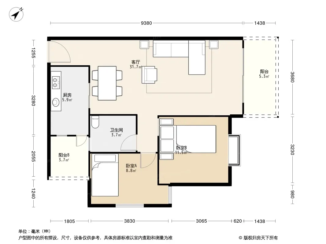 户型齐全,主打明卫,双阳台,主卧朝南三居