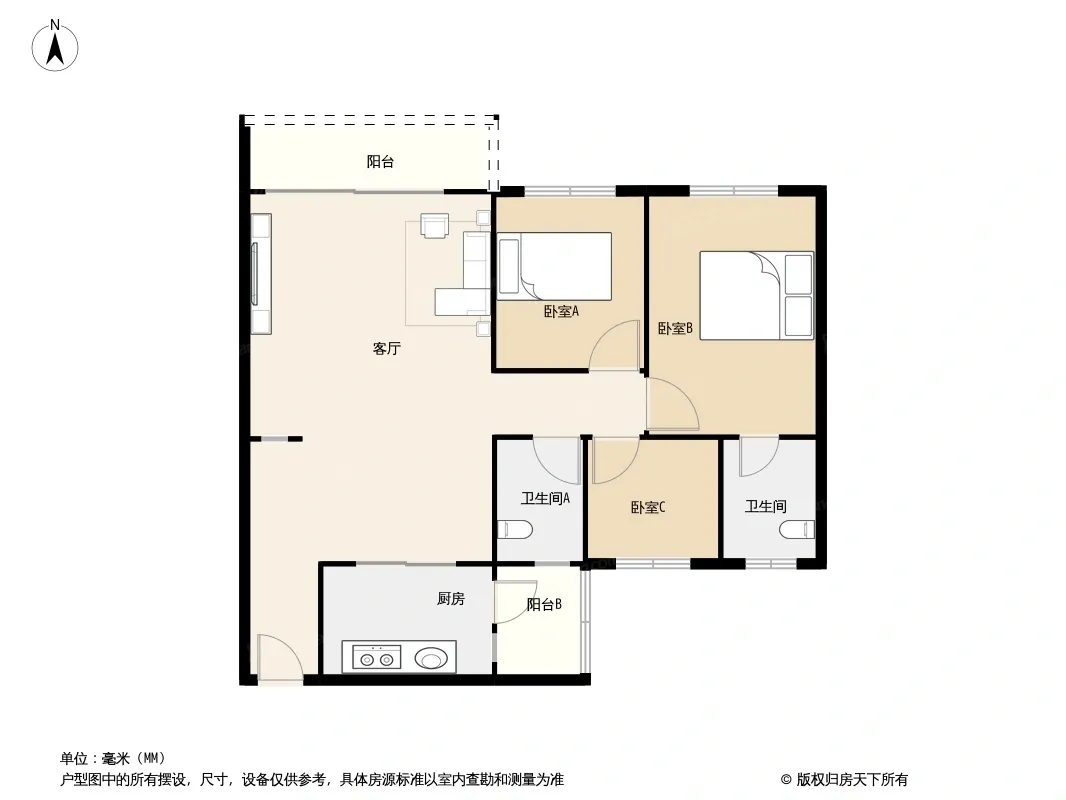 户型齐全,主打明卫,双阳台,主卧朝南三居