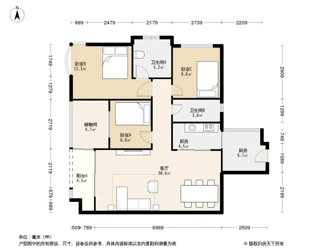 户型齐全,主打全明格局,户型方正,动静分离,采光充足三居