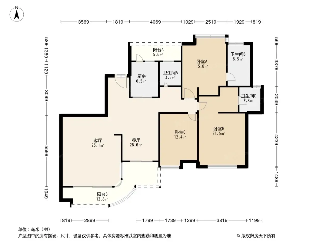 户型齐全,主打全明格局,户型方正,动静分离,采光充足三居
