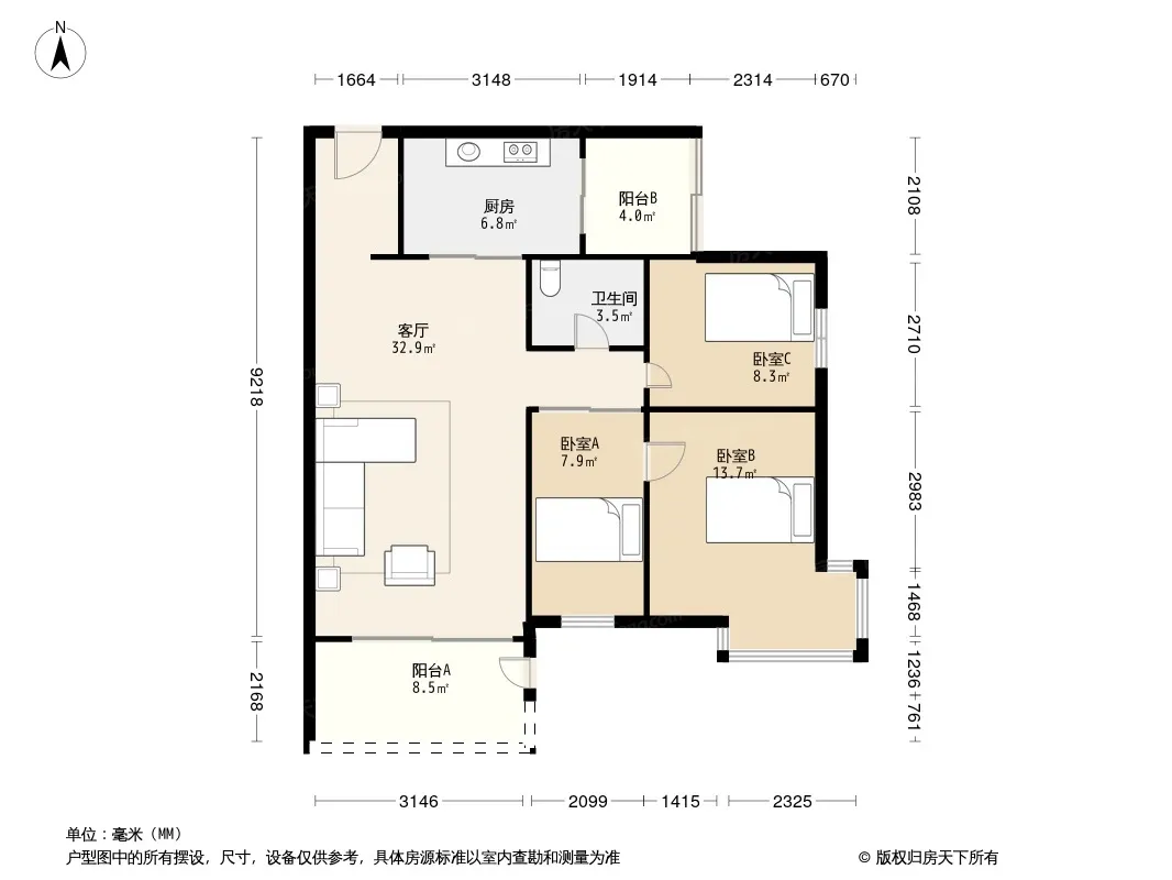 户型齐全,主打户型方正,双阳台,主卧朝南三居