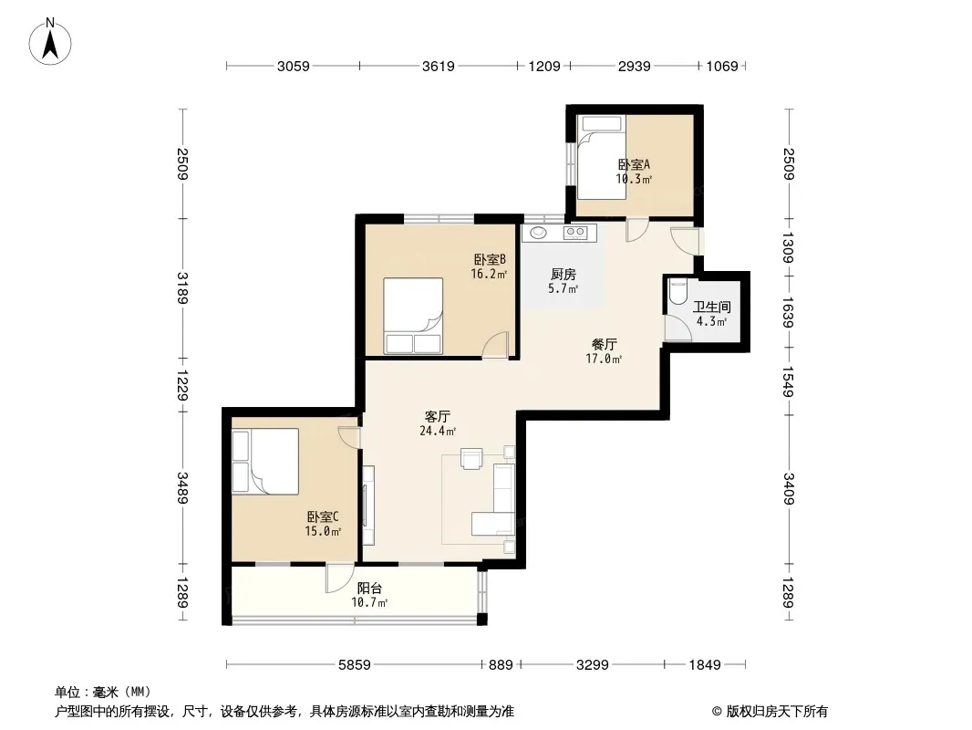 户型齐全,主打户型方正,明卫,明厨,客厅朝南,全明格局三居