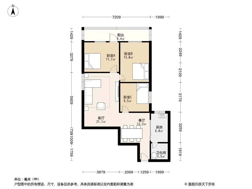 户型齐全,主打户型方正,明卫,明厨,客厅朝南,全明格局三居
