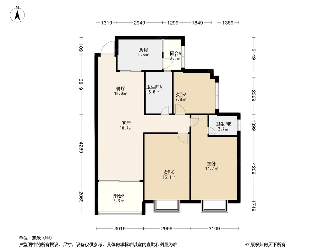 户型齐全,主打南北通透,主卧带卫,入户花园三居