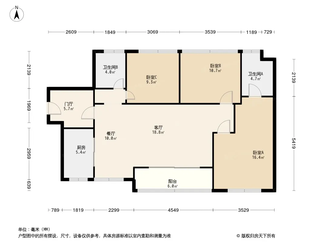 户型齐全,主打南北通透,全明格局,动静分离,采光充足三居