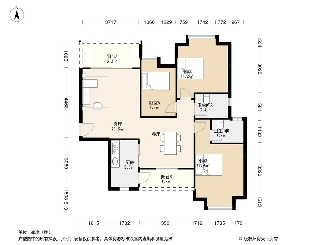 户型齐全,主打明卫,明厨,双阳台三居
