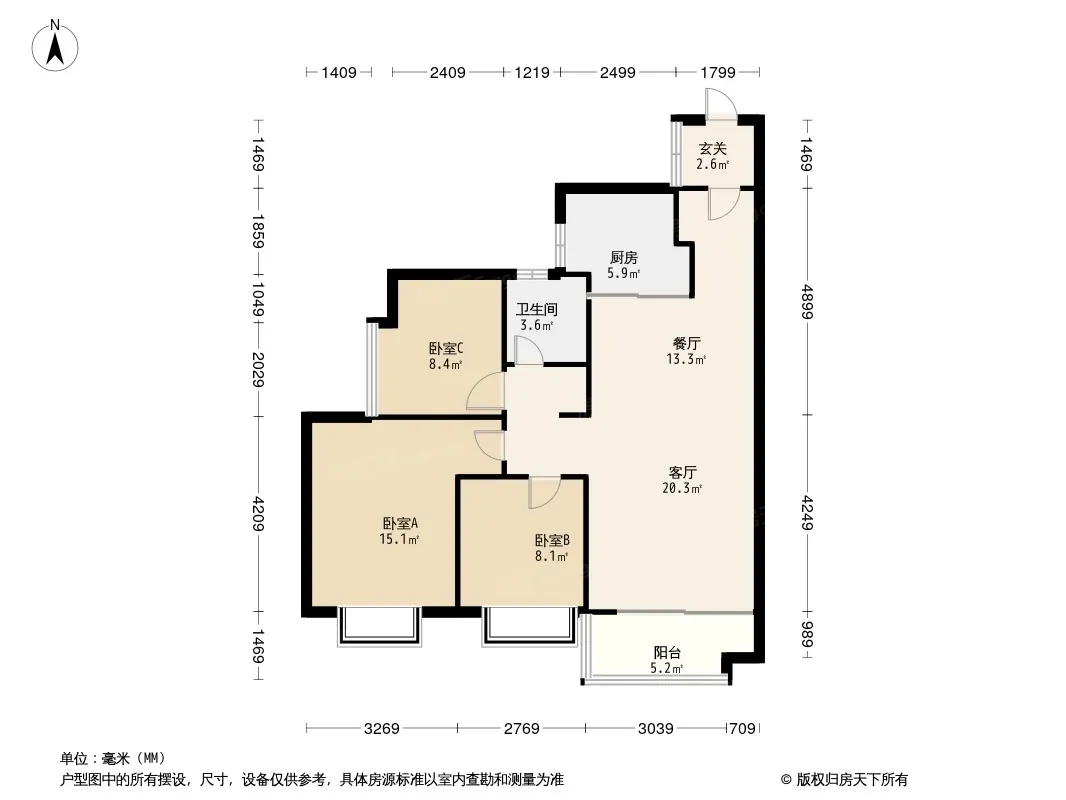 五矿壹云台 3室1厅 南