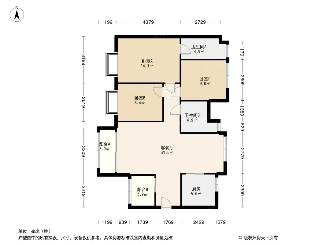 户型齐全,主打南北通透,采光充足四居