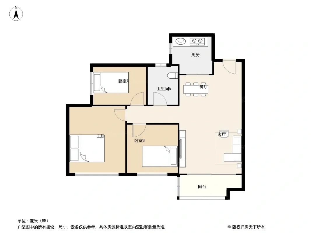 户型齐全,主打全明格局,户型方正三居