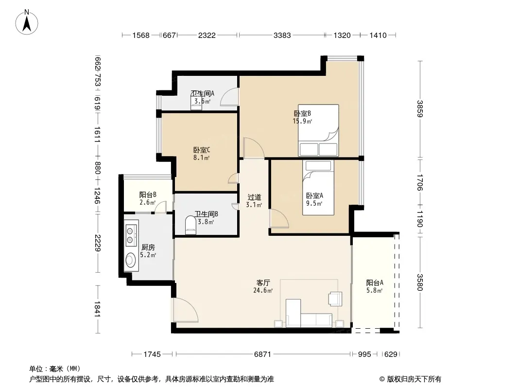 户型齐全,主打明卫,双阳台三居