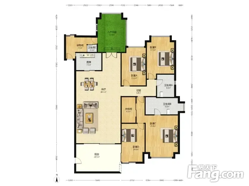 户型齐全,主打明卫,独立衣帽间,双阳台,主卧朝南四居