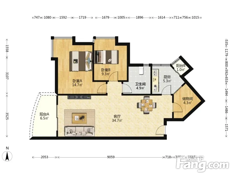 户型齐全,主打明卫,双阳台二居