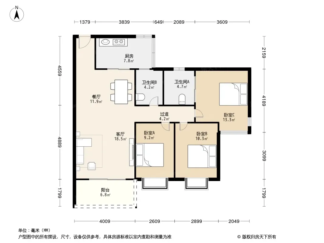 户型齐全,主打明卫,双阳台三居