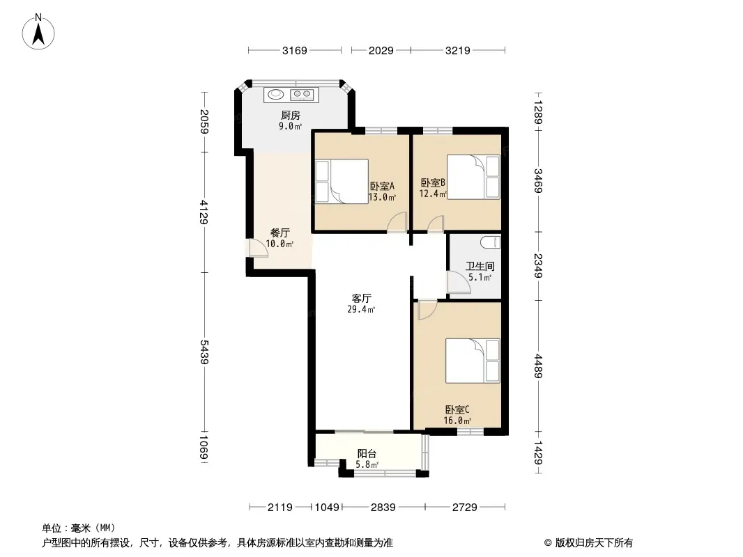 户型齐全,主打户型方正,明卫,明厨,客厅朝南,双阳台三居