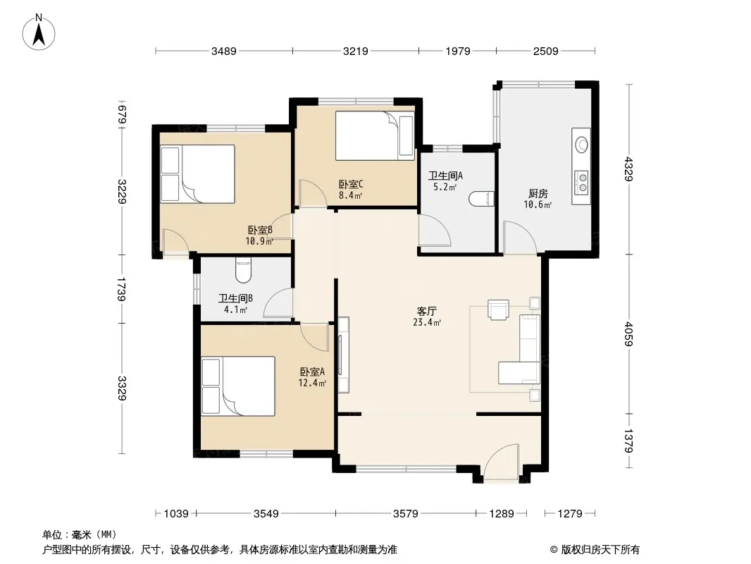 户型齐全,主打户型方正,客厅朝南,双阳台三居