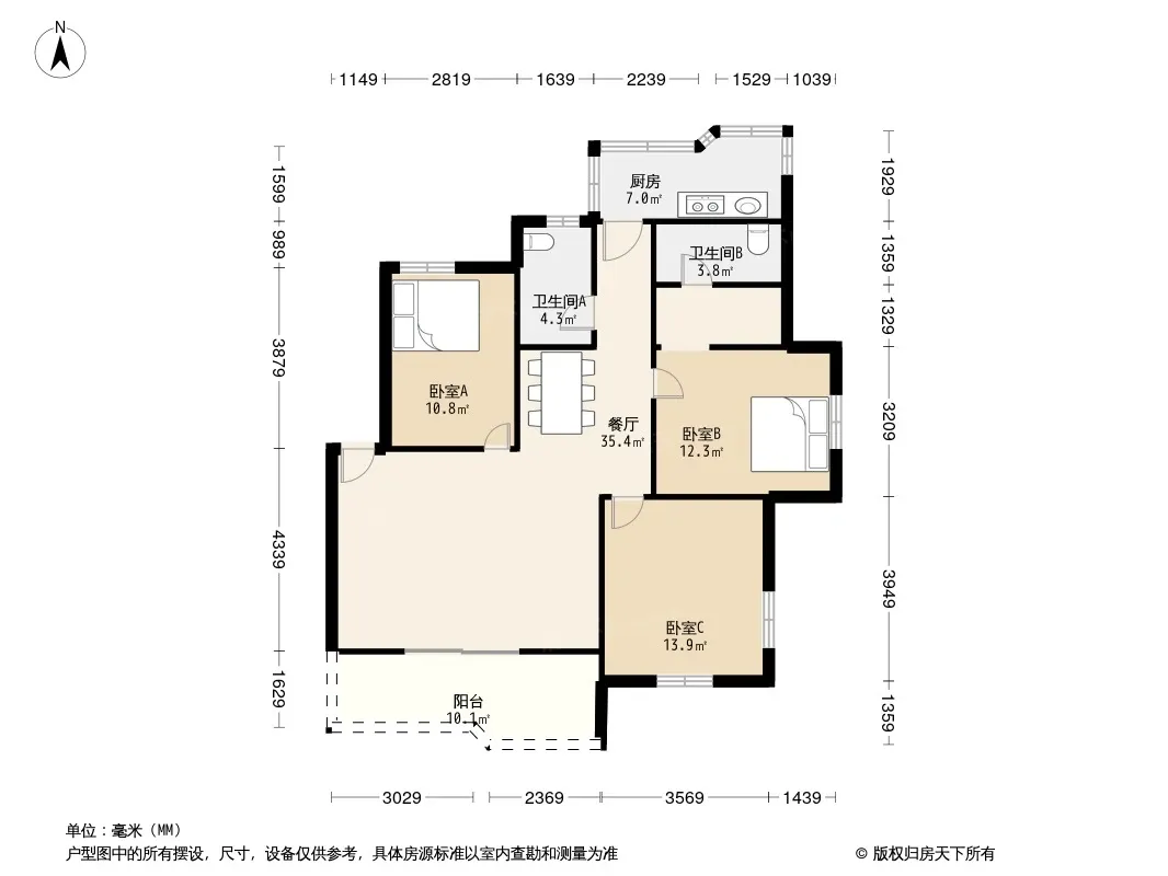 户型齐全,主打户型方正,客厅朝南,双阳台三居