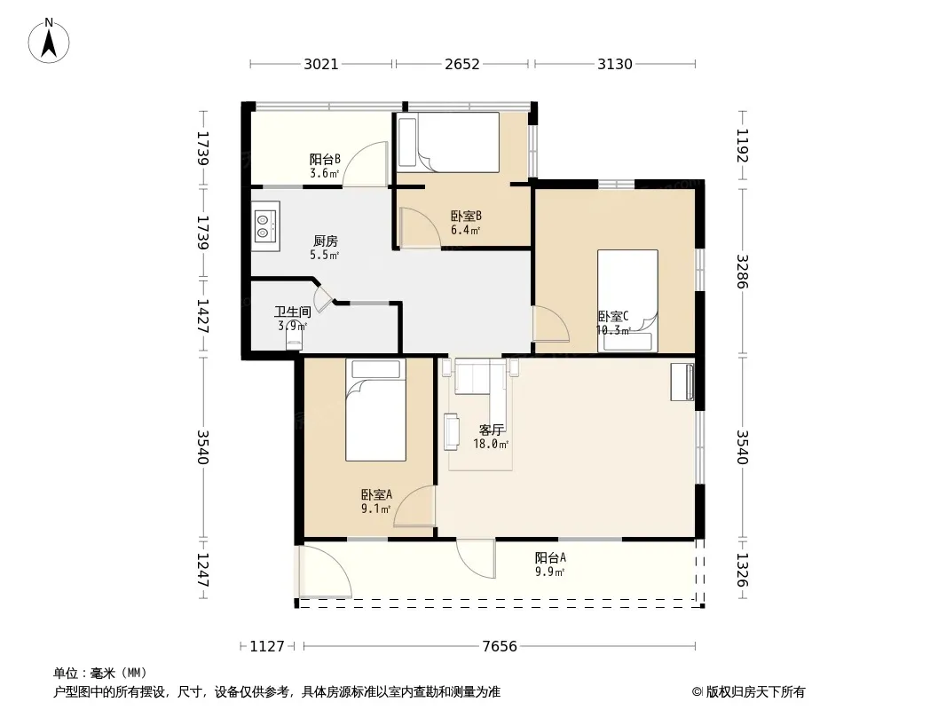 户型齐全,主打户型方正,客厅朝南,双阳台三居