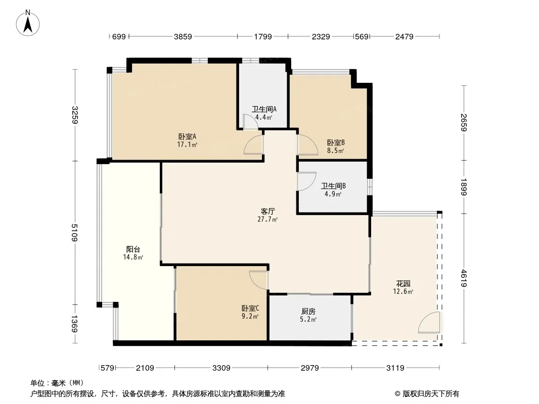 户型齐全,主打户型方正,明卫,明厨,客厅朝南,全明格局三居