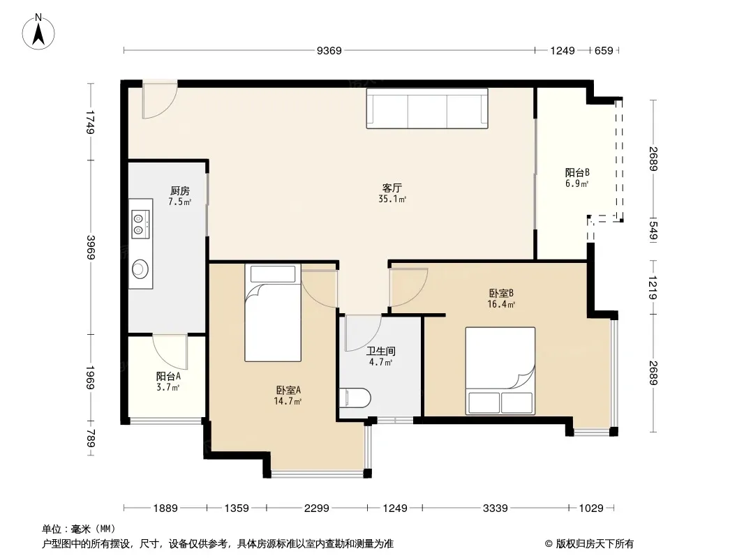 户型齐全,主打户型方正,明卫,明厨,客厅朝南,全明格局三居