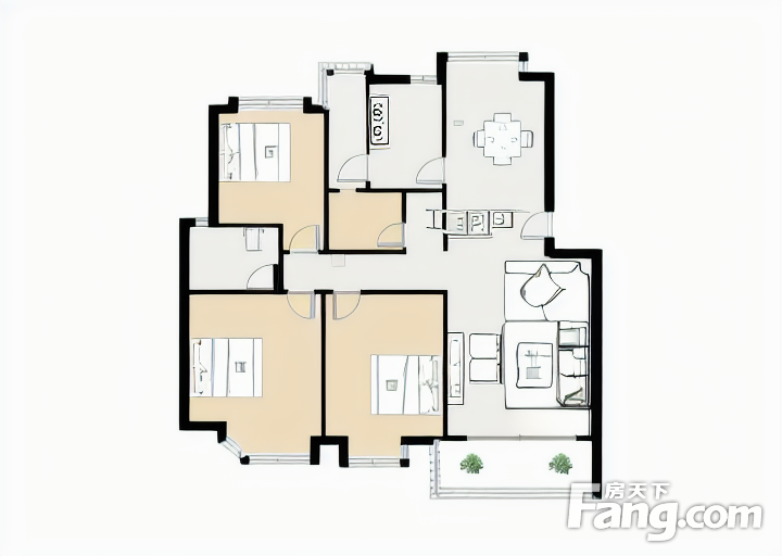 户型齐全,主打动静分离,主卧套间,双阳台三居