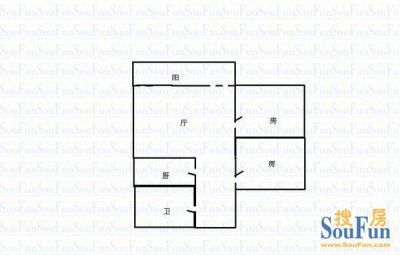 厅出阳台户型方正两房 有电梯 全明户型 采光无遮挡