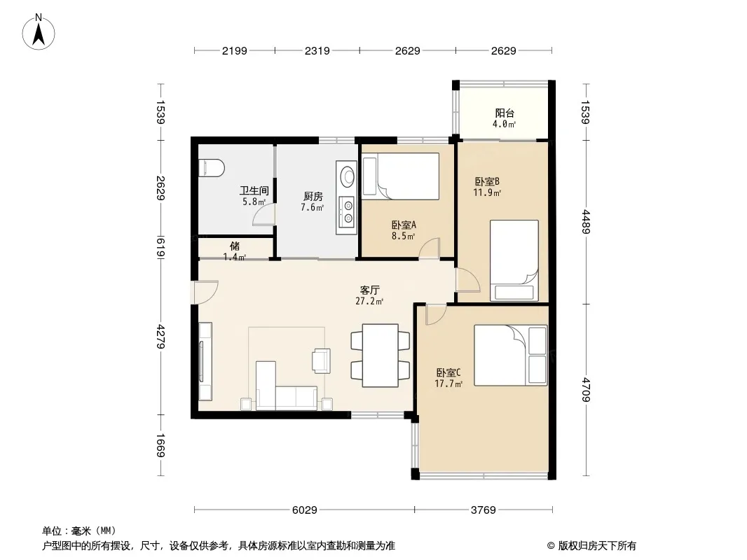 户型齐全,主打户型方正,明卫,明厨,客厅朝南,全明格局二居