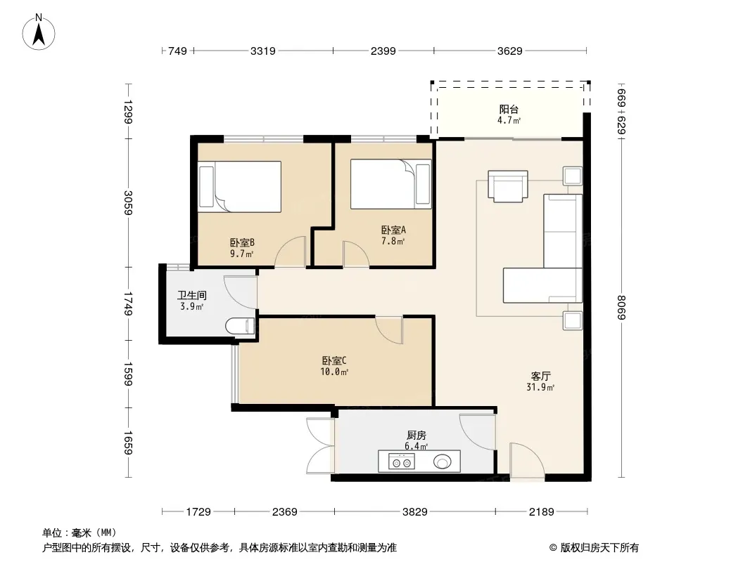 户型齐全,主打南北通透,干湿分离,双阳台三居