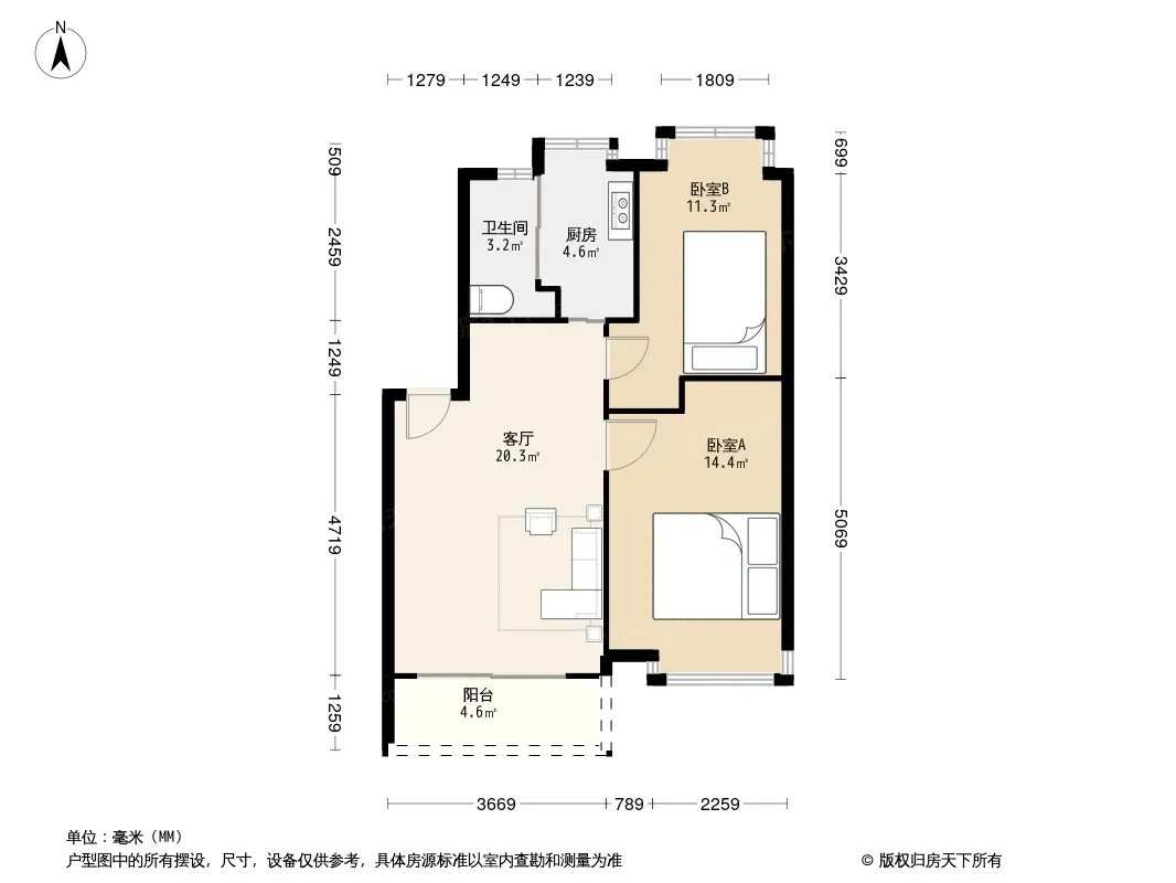 户型齐全,主打户型方正,明卫,明厨,客厅朝南,全明格局二居