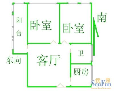 户型齐全,主打明卫,明厨,客厅朝南,全明格局二居