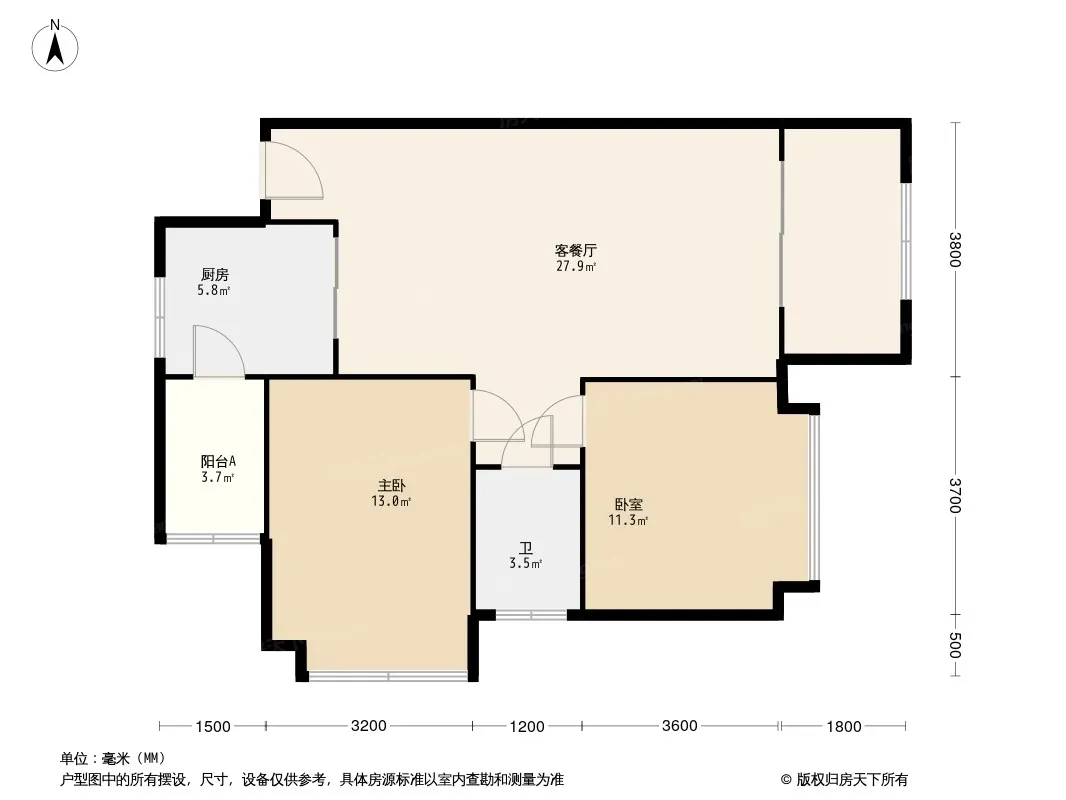 户型齐全,主打南北通透,主卧带卫,户型方正,干湿分离三居
