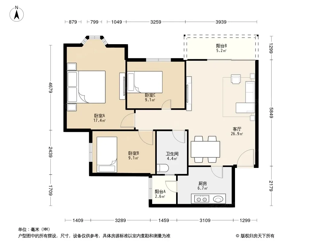 户型齐全,主打户型方正,明卫,双阳台三居