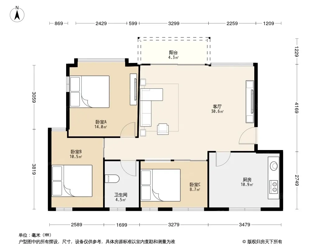 *获取完整户型报告,同时会有免费语音讲解服务