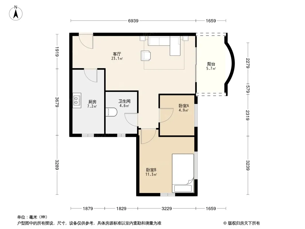 户型齐全,主打双阳台,双卧朝南,主卧朝南三居