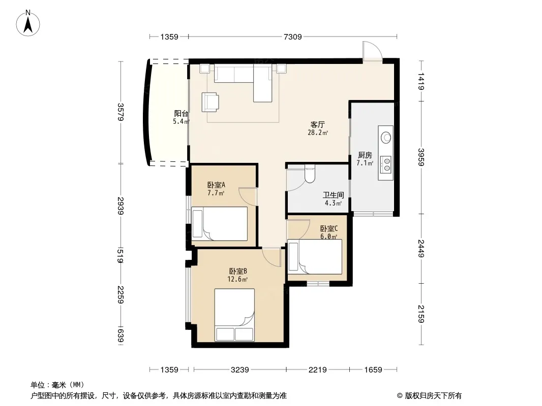 户型齐全,主打双阳台,双卧朝南,主卧朝南三居